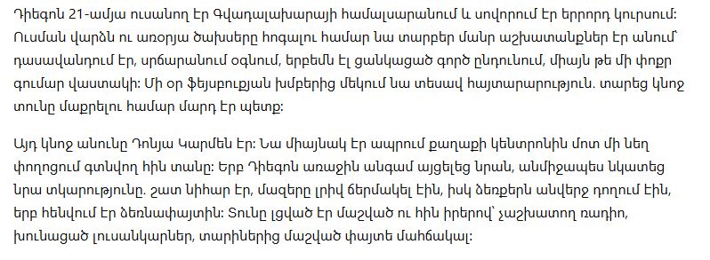 Меня зовут Диего. Мне 21, я учусь на третьем курсе университета в Гвадалахаре. Как и многие студенты, я постоянно ищу подработки: то помогу в кофейне, то возьму несколько часов репетиторства, то соглашусь на любую разовую работу, лишь бы хватило на учебу и повседневные расходы.