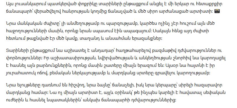 Сегодня этот человек известен как артист, чьё имя связано с талантом, работоспособностью и умением оставаться настоящим. Его (или её) можно увидеть на сцене и на экранах — а главное, в сердцах тех, кому близка эта история.