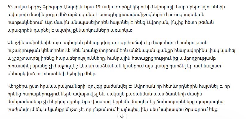 Пока что причина расставания остаётся неясной. Одни пользователи предполагают, что на ситуацию могли повлиять различия в образе жизни и взглядах, другие считают, что пара просто пережила непростой период, который не удалось преодолеть. Официальных комментариев от Григория Лепса на момент публикации не приводится.