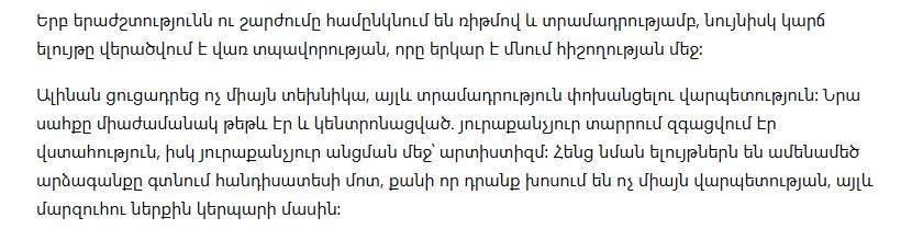 Подобные постановки напоминают, что фигурное катание — это не только сложные элементы и точность движений, но и искусство, в котором важны эмоции, образ и умение увлечь зрителя с первых секунд. Именно поэтому выступление Алины Загитовой под звуки армянского дудука стало таким заметным и получило теплый отклик у публики.