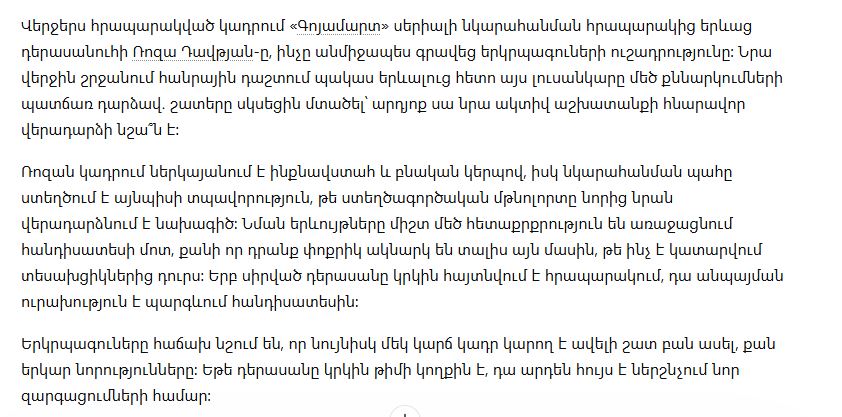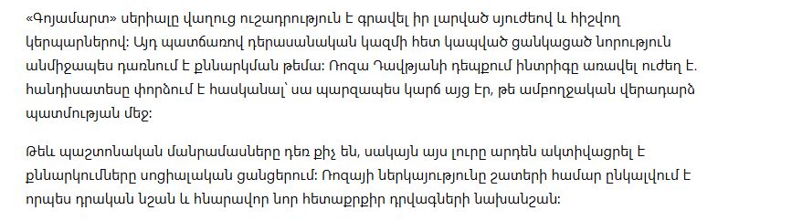 Сериал «Гойамарт» давно привлёк к себе внимание благодаря напряжённому сюжету и узнаваемым персонажам. Поэтому любое обновление, связанное с актёрским составом, вызывает интерес. В случае с Розой Давтян интрига особенно сильна: зрители хотят понять, идёт ли речь о разовом визите на площадку или о полноценном возвращении в историю.