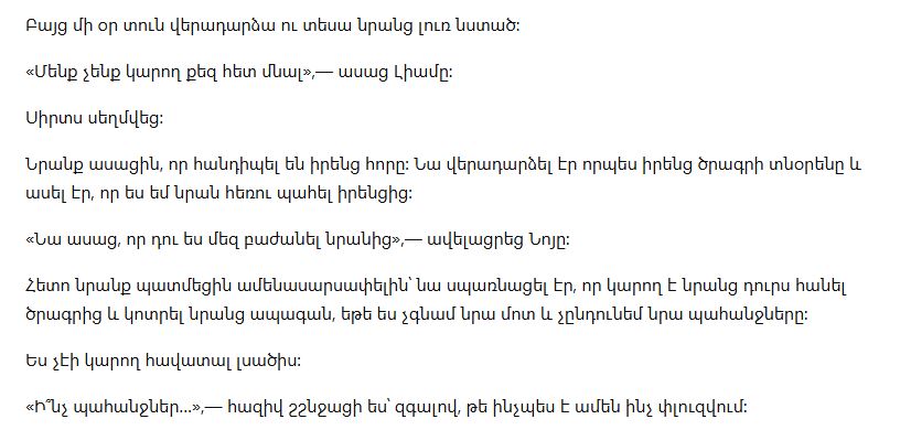 Ещё хуже было то, что он поставил условие: если я не соглашусь на его игру в «идеальную семью», он постарается испортить мальчикам будущее. Он хотел использовать их на важном приёме, где собирался укрепить собственную репутацию.