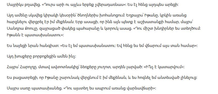 Я постарался говорить спокойно: «Итан постоянно берёт мою машину. И я устал от того, что со мной обращаются так, будто я ничего не значу».