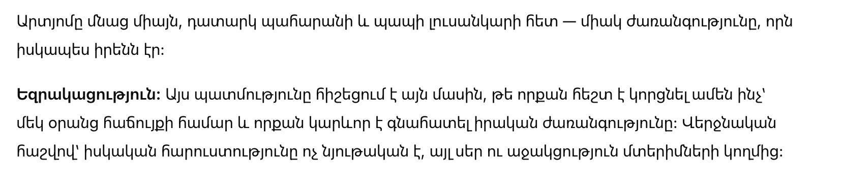 Заключение: Эта история служит напоминанием о том, как легко можно потерять всё ради минутных удовольствий и как важно ценить настоящее наследие. В конечном итоге, истинные богатства — это не материальные вещи, а любовь и поддержка близких.