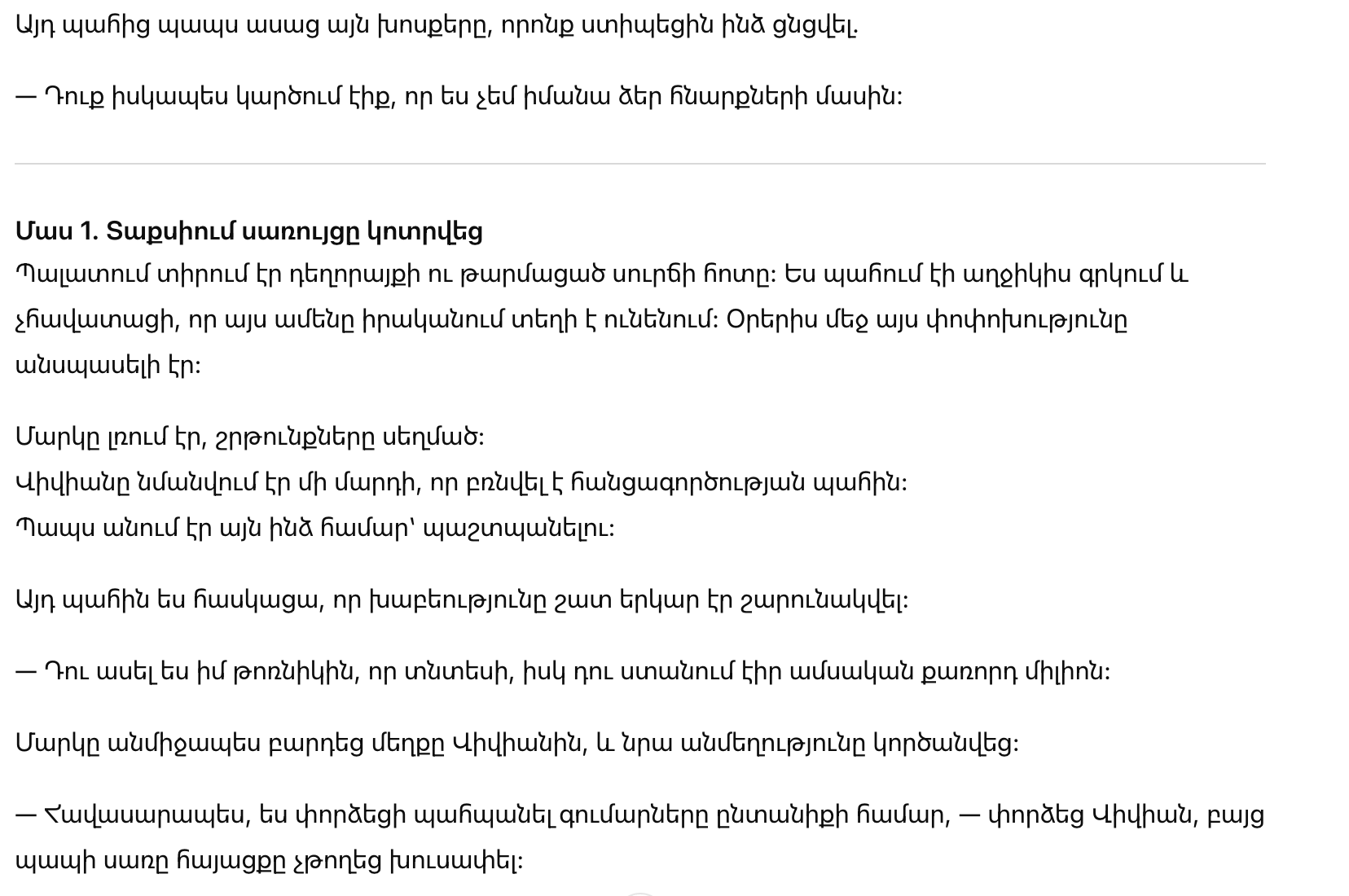 Дед продолжал: “Ты сказала моей внучке, чтобы она экономила, но сам получал четверть миллиона в месяц?” Это было остро и несправедливо.