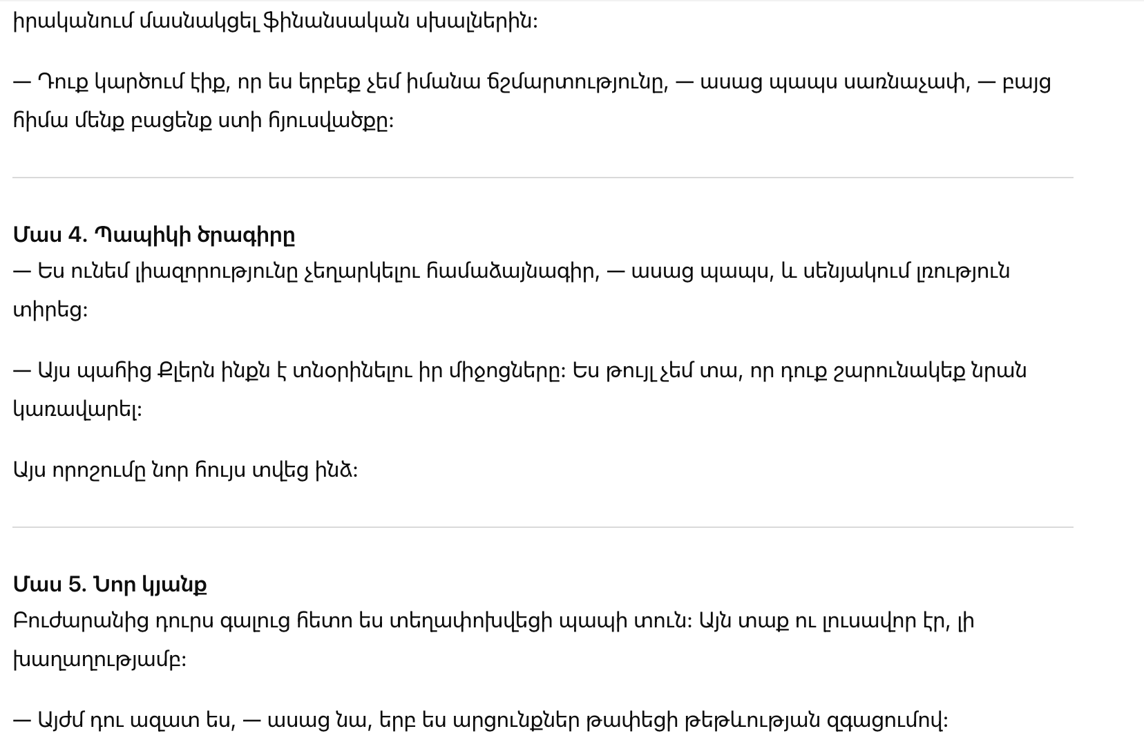 — Ошибка? Финансовая ошибка происходила в течение трёх лет, — заметил дед. — Это почти невозможно.