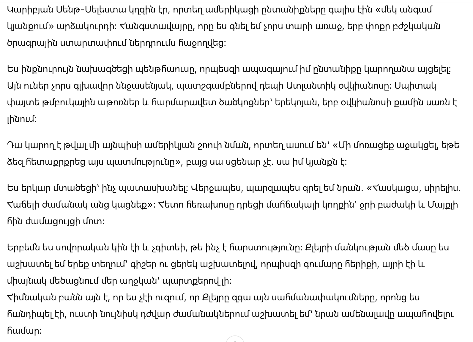 «Недостаточно места» в Silver Palm. В тот самый Silver Palm с шестью ресторанами на берегу океана, тремя бесконечными бассейнами, детским клубом и спа, который был упомянут в Travel + Leisure. На крошечном карибском острове Сент-Селеста, куда американские семьи летали на «раз в жизни» отпуска. Это тот курорт, который я купила четыре года назад после того, как инвестиции в маленький стартап в области медицинского программного обеспечения оказались успешными.
