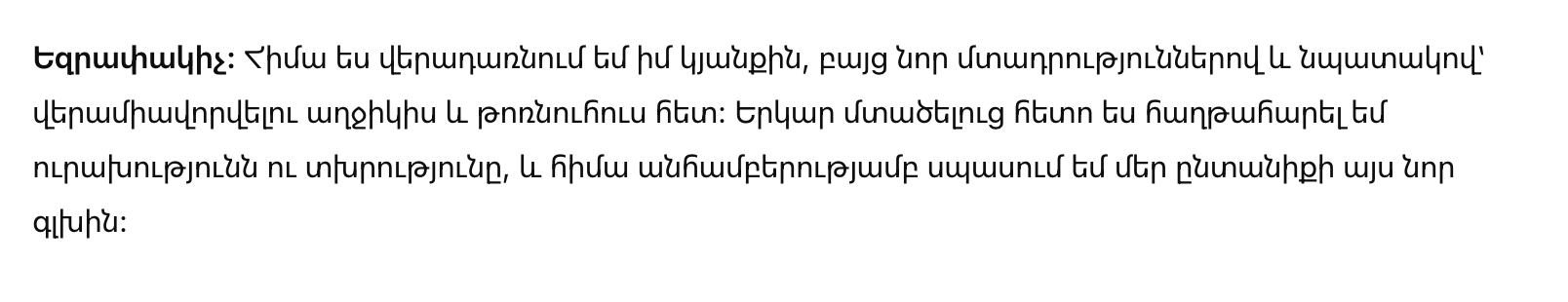 Заключение: Я теперь возвращаюсь в свою жизнь, но с новыми намерениями и дружной целью воссоединиться с дочерью и внучкой. После долгих размышлений я пережила радость и горе, а теперь с нетерпением жду этой новой главы в нашей семье.
